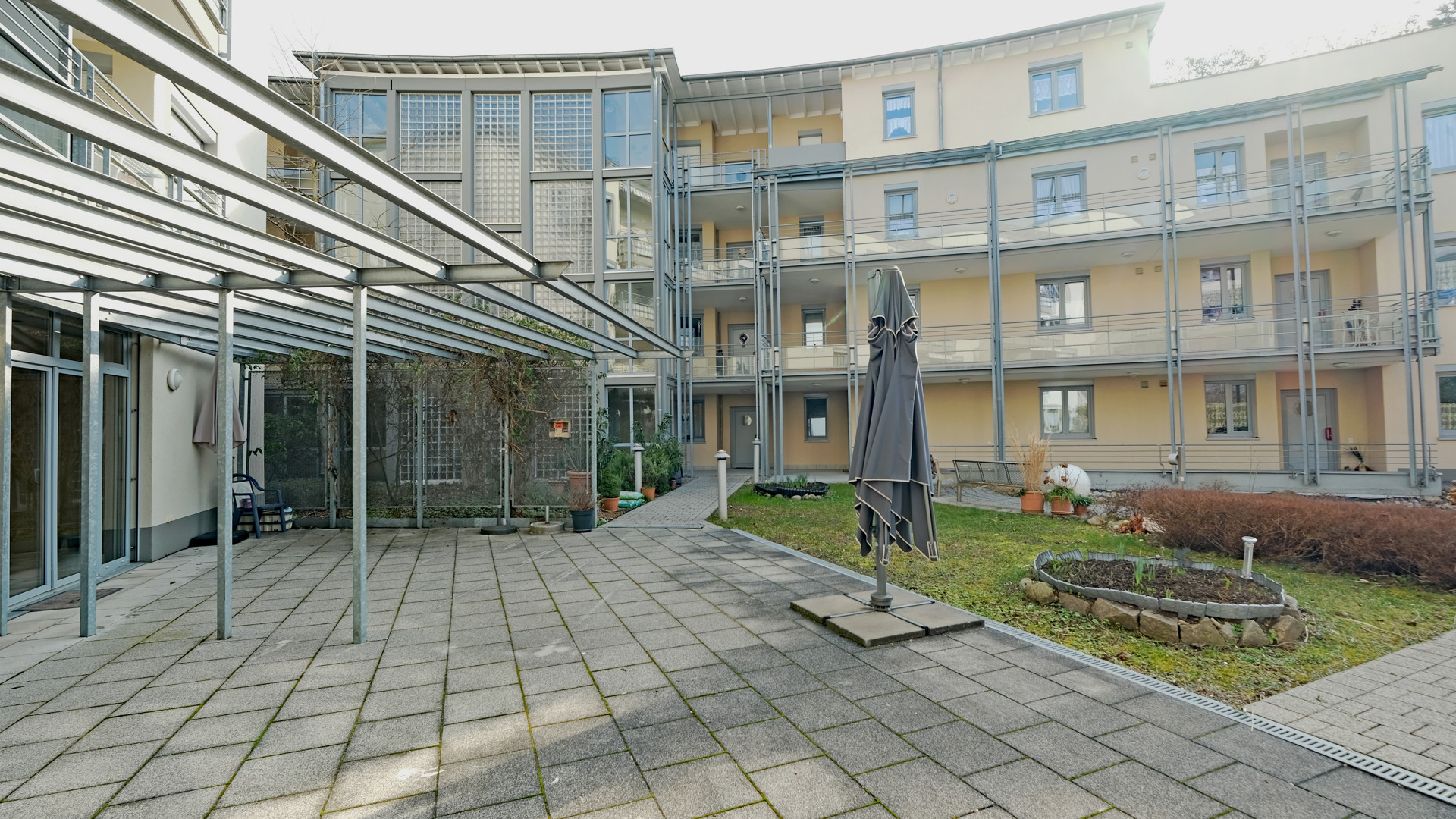 Willkommen in dieser modernen und barrierefreien 2-Zimmer-Erdgeschosswohnung, die sich in der gepflegten Seniorenresidenz "Erlenhof" in Altweil in Grenznähe befindet.