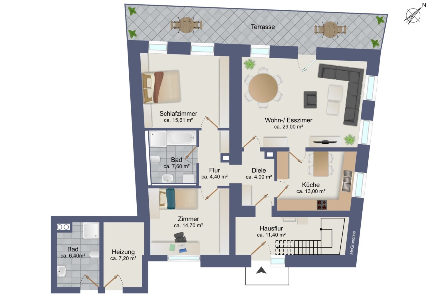 Das Wohnhaus wurde im Erdgeschoss 1994 umfassend saniert. Das 1. Obergeschoss wurde ebenfalls teilweise 1994 saniert, während das zweite Obergeschoss eine Sanierung benötigt und somit Potenzial für individuelle Gestaltung bietet. Aktuell ist das Gebäude in zwei Wohneinheiten aufgeteilt, doch es besteht die Möglichkeit, mit geringem Aufwand eine dritte Wohneinheit zu schaffen.