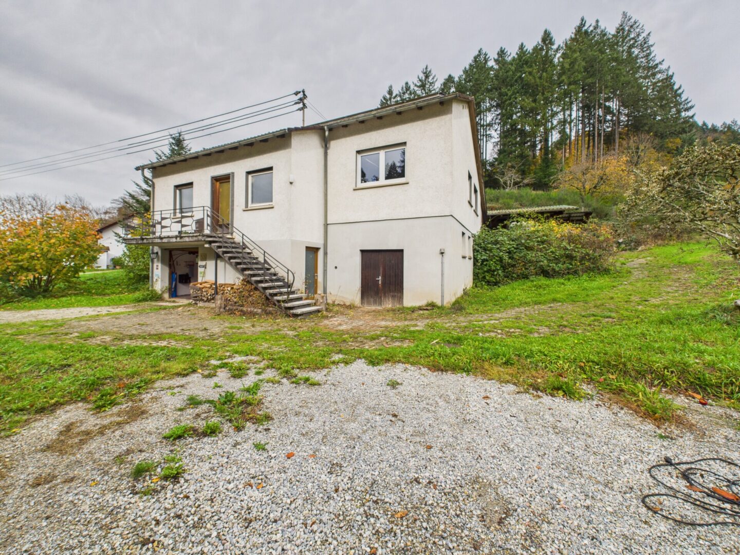 Dieses Einfamilienhaus Baujahr 1960 auf ca. 2.322 m² Baugrundstück umgeben von ca. 3.132 m² Wald- und Grünflächen bietet eine seltene Gelegenheit für Handwerker, Visionäre und Naturfreunde. Die Immobilie am Ortsrand bietet ein außergewöhnliches Entwicklungspotenzial.