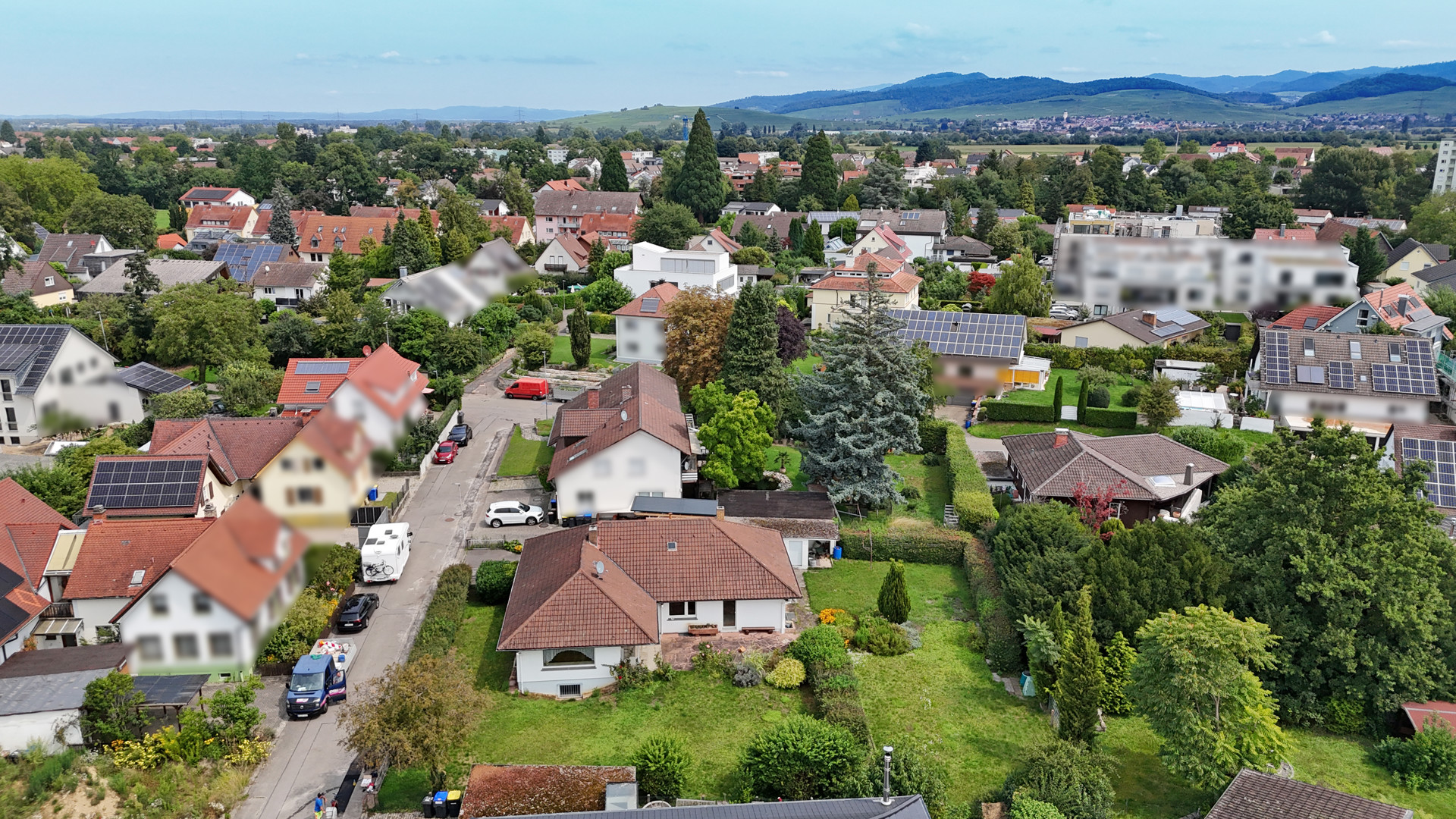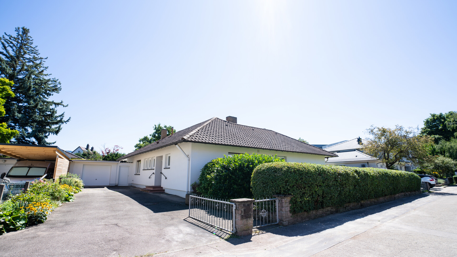 In einer der gefragtesten Lagen Bad Krozingens, nahe dem Herzzentrum und fußläufig zu den Schulen, erwartet Sie dieser L-förmige Bungalow auf einem beeindruckenden 1.119 m² großen Grundstück. Ein Haus auf einem derart großzügigen Grundstück ist in dieser Lage eine echte Rarität.