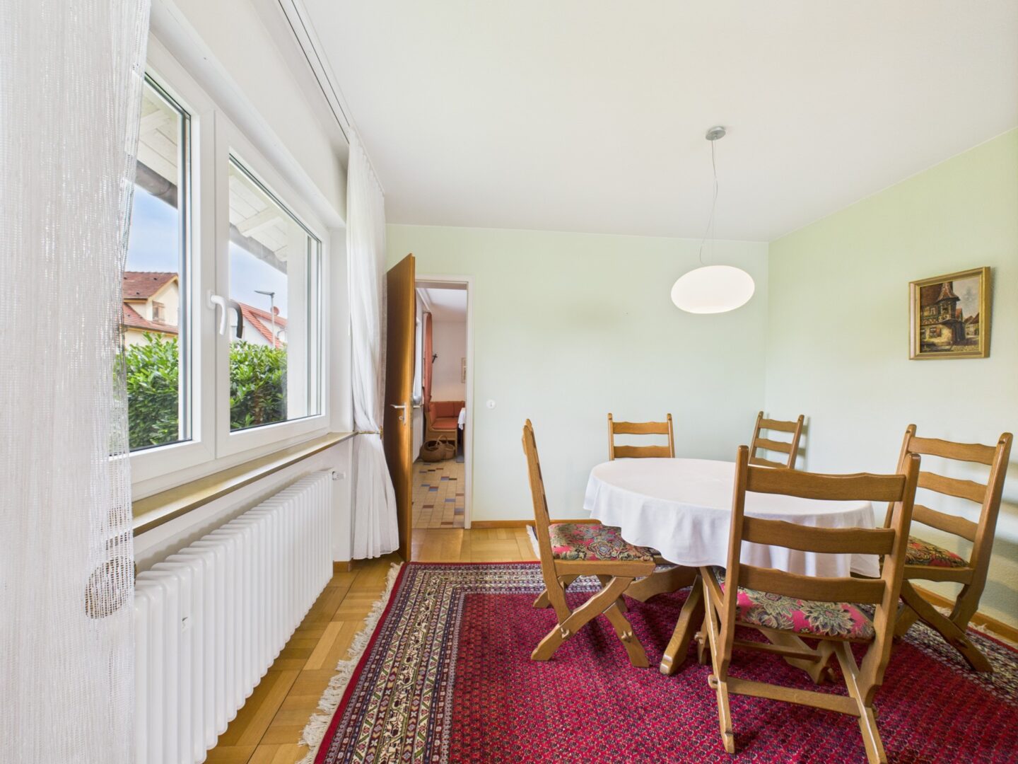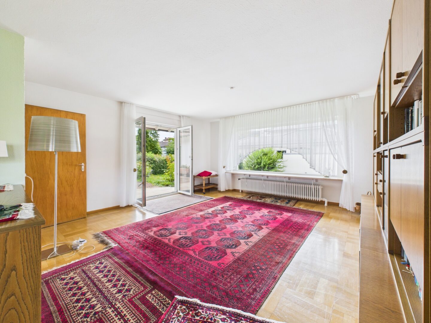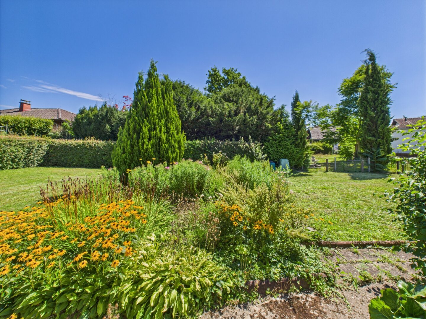 Die sonnige Südterrasse und der weitläufige Garten mit Rasenflächen, Blumenbeeten und Hecken bieten Kindern viel Platz zum Spielen und Erwachsenen einen Ort zum Entspannen. Eine Garage mit offenem Anbau für Gartengeräte rundet das Angebot ab.