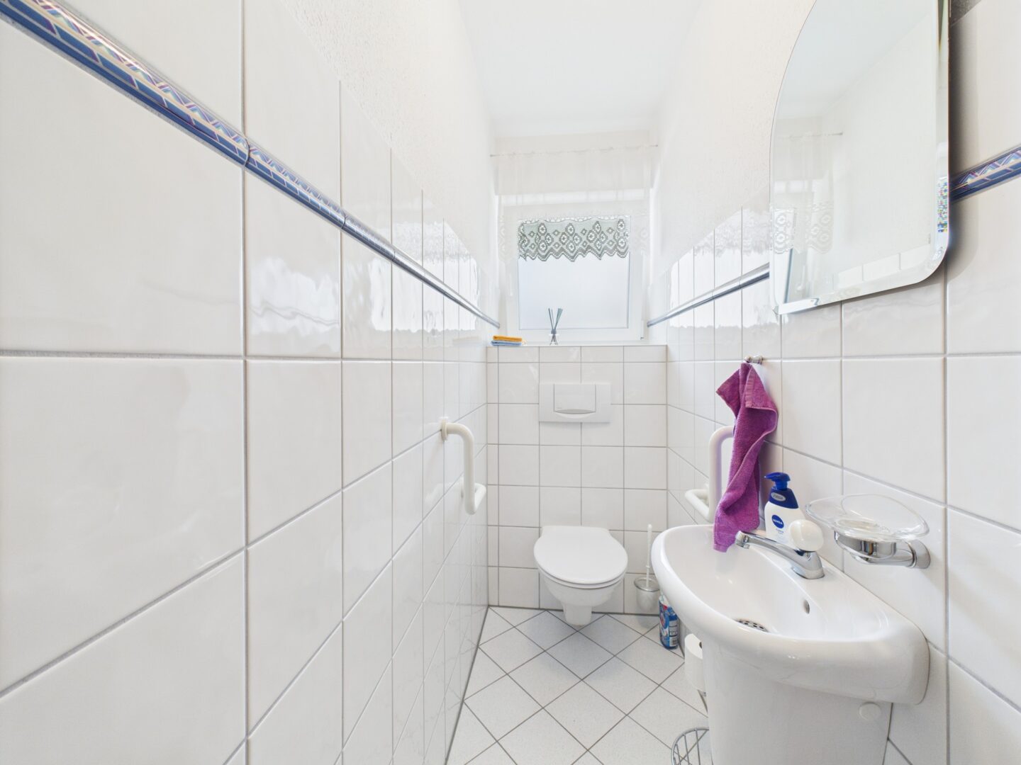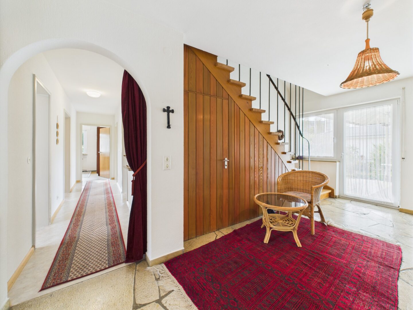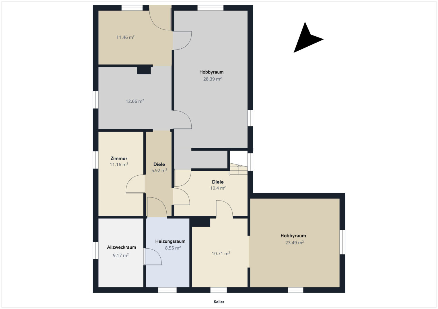 Der voll unterkellerte Bereich bietet nicht nur viel Stauraum, sondern auch einen großen beheizten Raum – ideal für Hobbys oder ein Spielzimmer. Über die Außentreppe gelangen Sie bequem in den Garten.