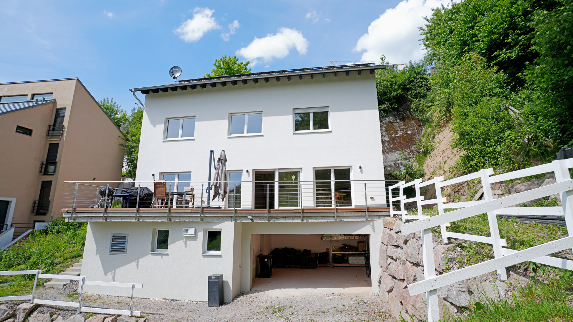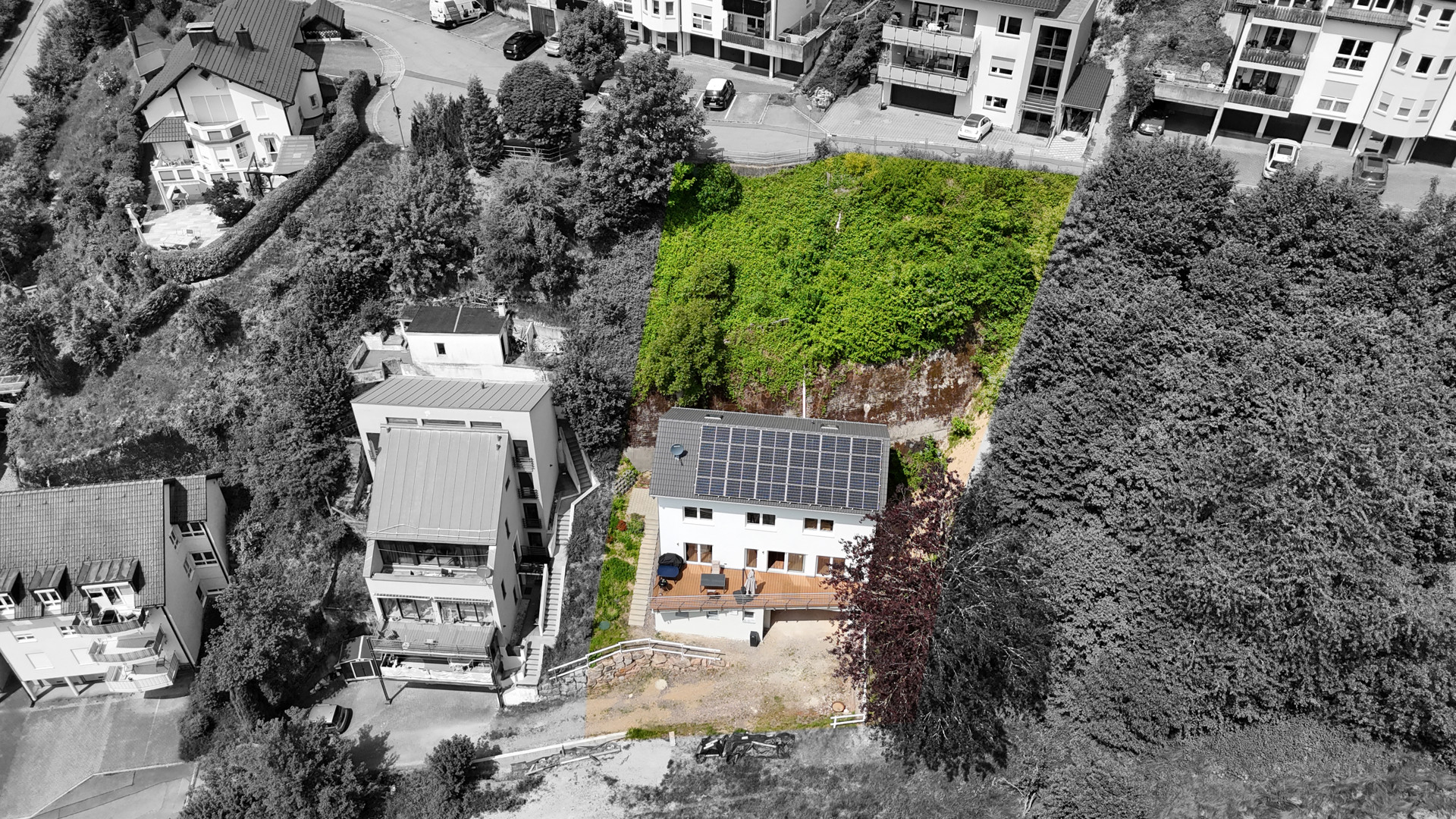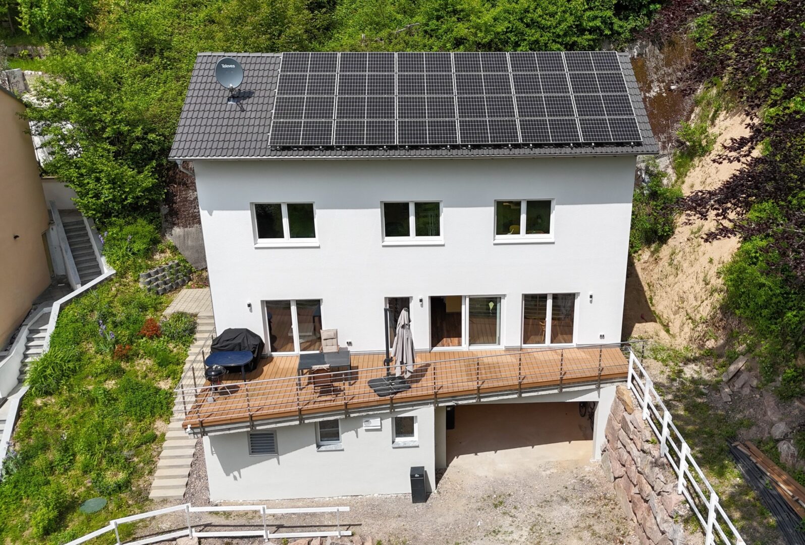 Dieses neuwertige, freistehende Einfamilienhaus, das 2023 in einer idyllischen Hanglage fertiggestellt wurde, vereint modernen Komfort, innovative Technik und eine exzellente Energieeffizienz. Auf einem großzügigen Hanggrundstück von ca. 819 m² bietet dieses KFW 40 Plus- Effizienzhaus eine unverbaubare weitläufige Aussicht auf die Umgebung. Mit einer Wohnfläche von ca. 137 m² und einem nachträglich ausgebauten Dachgeschoss mit 2 weiteren zusätzlichen Zimmern (ca. 44 m²) offeriert die Immobilie verschiedene Nutzungsmöglichkeiten.