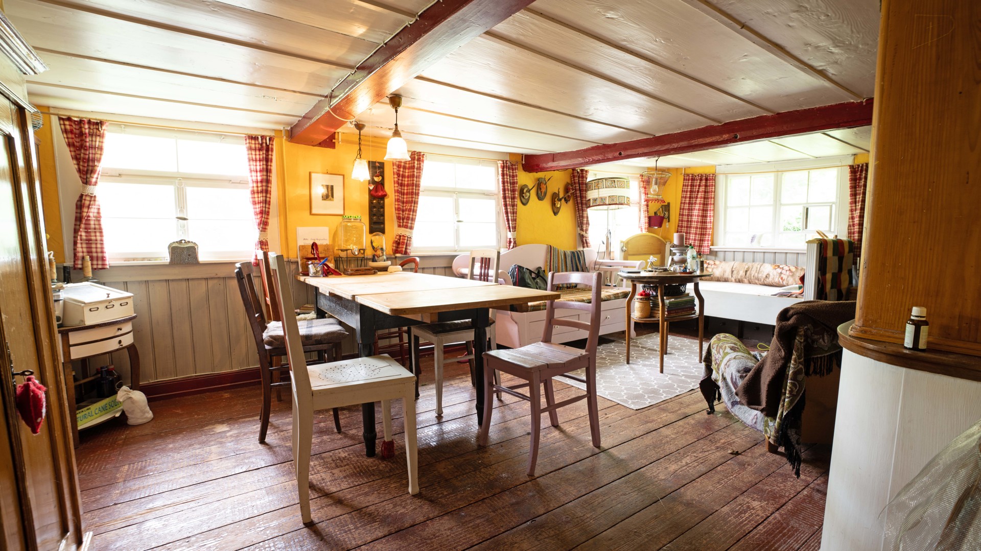 Das Innere des Hauses besticht durch eine behagliche Atmosphäre: Ein gemütlicher Kachelofen und Schwedenöfen sorgen für wohlige Wärme. Eine Sauna im Untergeschoss lädt zu entspannten Stunden ein.