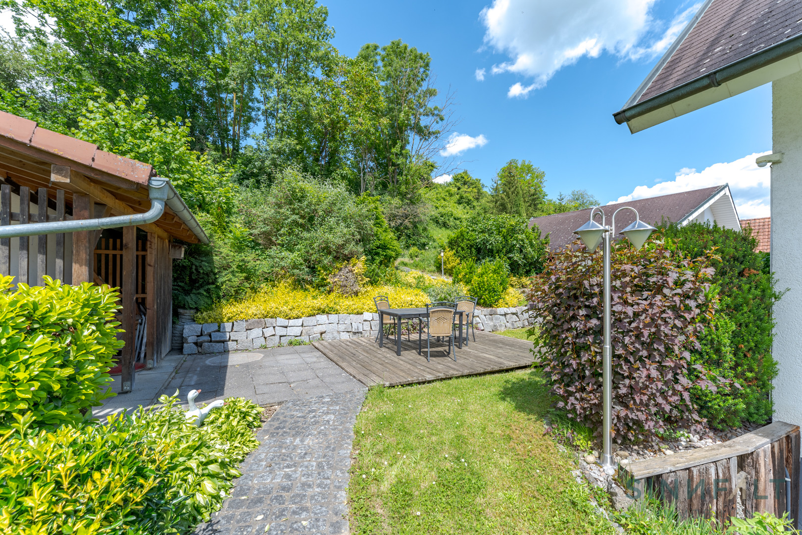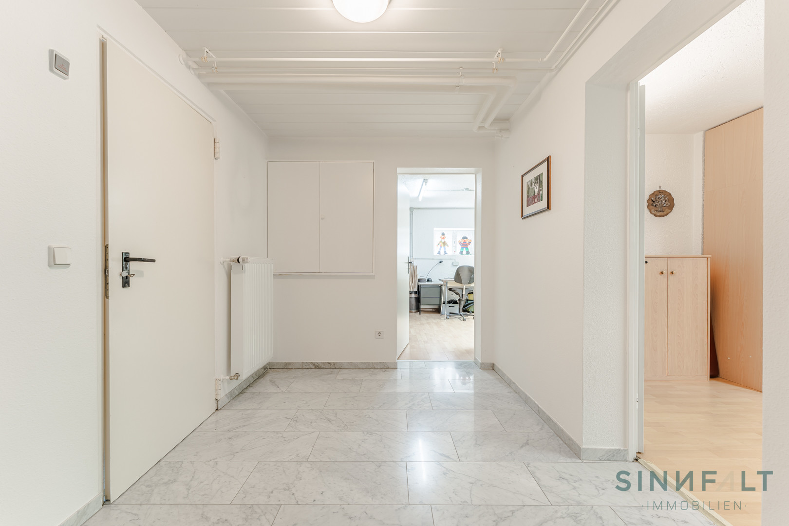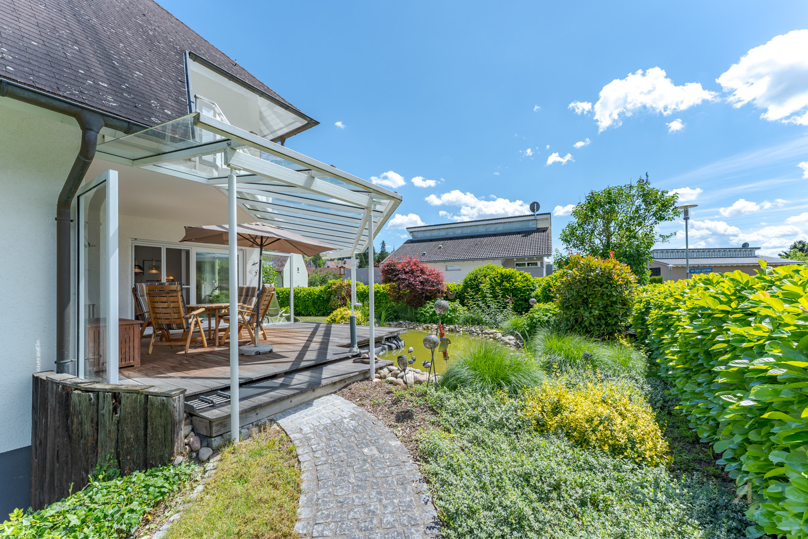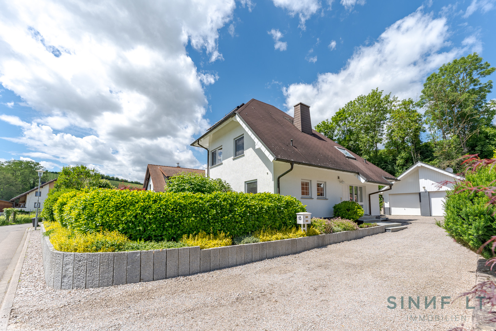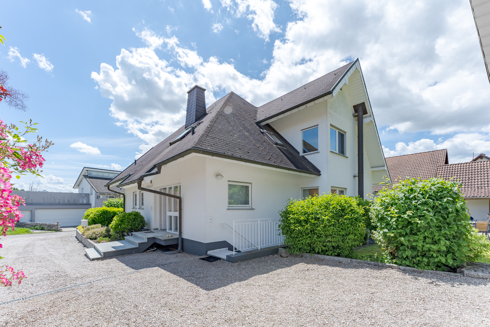 Das Haus befindet sich in einem sehr gepflegten Zustand und zeugt von der Sorgfalt, mit der die Eigentümer es instand gehalten haben. Ein besonderes Merkmal ist das Untergeschoss, das zusätzlichen Raum für eine Einliegerwohnung mit eigenem Eingang bietet.