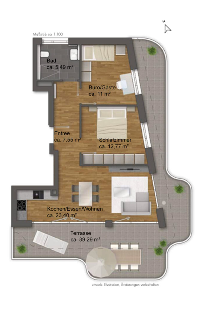 Das Penthouse verfügt über zwei helle Schlafzimmer, die viel Platz für Ihre individuellen Wohnideen bieten. Das moderne Badezimmer ist mit einer stilvollen, bodentiefen Dusche ausgestattet und lädt zum Entspannen ein. Ein Highlight ist die neue Designer-Küche, die zum Einzug eingebaut wird und durch ihre hochwertige Ausstattung keine Wünsche offen lässt.